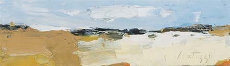 SERGIO SCATIZZI Gragnano (Lu) 20/12/1918 - Firenze 02/12/2009 Paesaggio olio su tavola cm. 15x55, firma in basso a destra, dichiarazione d'autenticità dell'artista su foto.