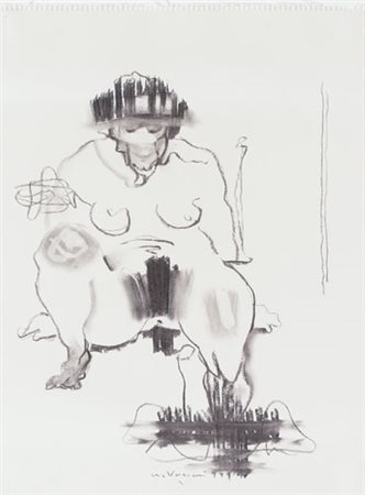 WAINER VACCARI Modena 08/12/1949 Figura femminile, 1999 carboncino su carta cm. 48x35,5; firma e anno in basso al centro, provenienza Levy Galery (Hamburg-Germania).