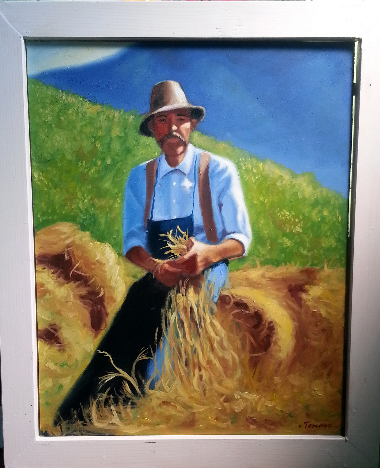 Vincenzo Toscano "Contadino" olio su tavola cm 50x40 certificato su foto L'Alfiere Arte-To