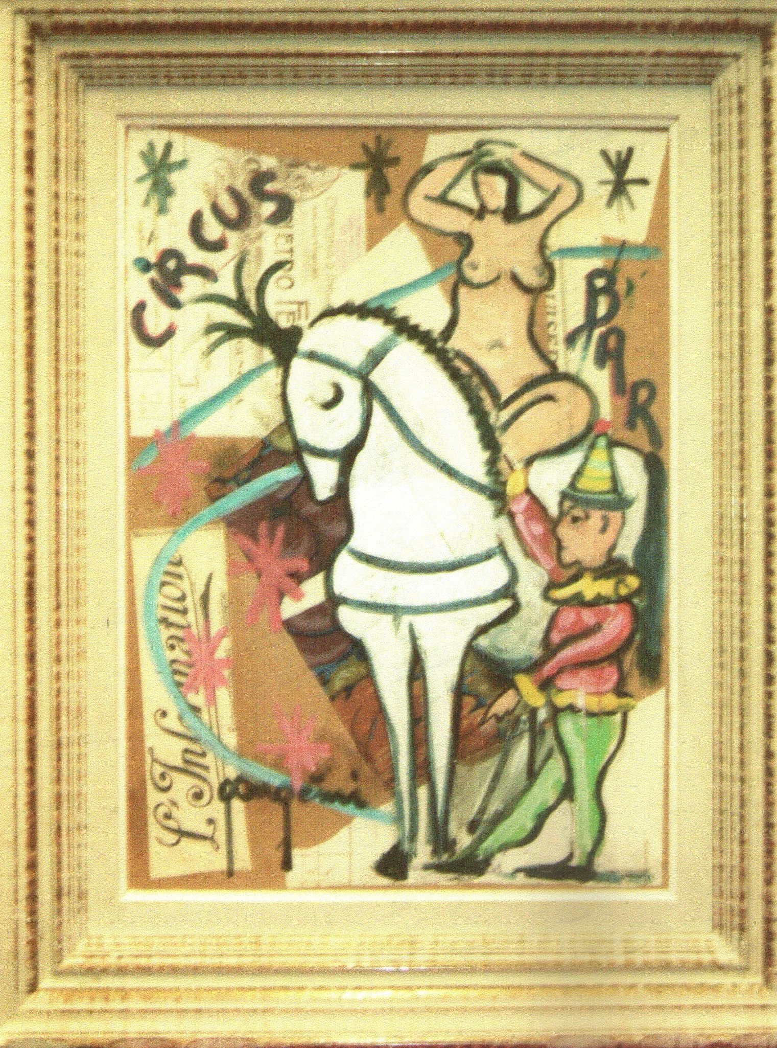 Gangemi "Circus bar" tecnica mista su tavola cm 35x50 Certificato...