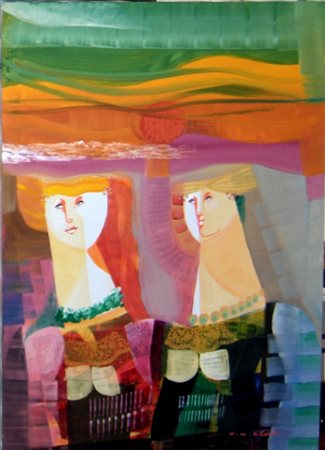 Vittorio Maria Di Carlo "Le amiche" olio su tela cm 100x70 Autentica e archivio dell'artista su foto