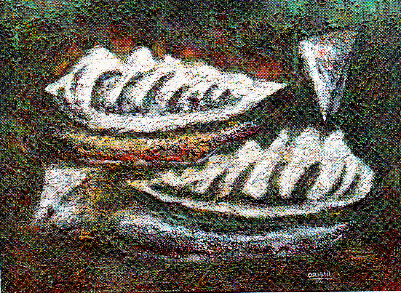 Pippo Oriani "struttura geologica preumana "1962 Olio e tecnica mista su tela cm 60x80 .Eichetta dell'atelier dell'artista al retro