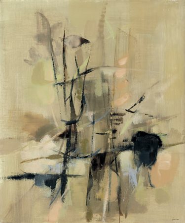 GIUSEPPE AJMONE Carpignano Sesia 17/02/1923 - 07/04/2005 Paesaggio olio su tela cm. 65x56, firma in basso a destra, etichetta della Galleria Pater (MI) al retro