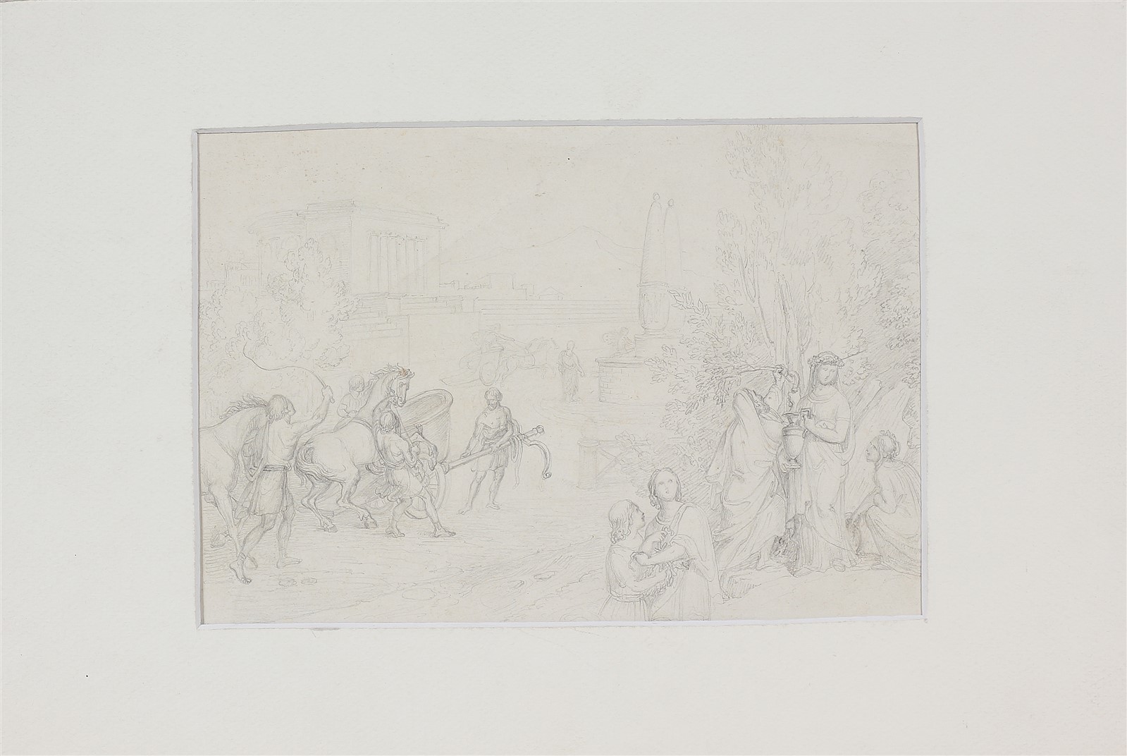 ARTISTA NEOCLASSICO Scena classica con carro, cavalli e personaggi. Matita su carta. Cm 25,50 x 18,50.