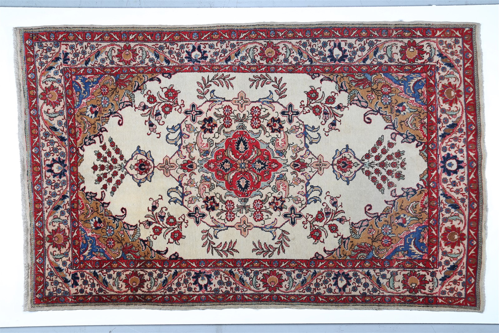 TABRIZ Tappeto orientale. Persia. 1940. Lana e cotone. Cm 167,00 x 270,00. Fondo giallo con centro rosso. Ottimo stato di conservazione.