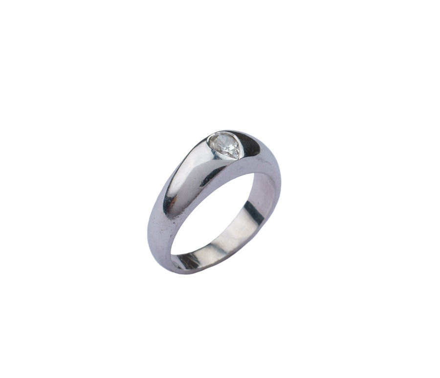 ANELLO IN ORO BIANCO 18KT CON UN DIAMANTE taglio a goccia ct 0,25 punti circa, misura 14 A 18KT WHITE GOLD AND DIAMOND RING 0,25 ct pear-shaped diamond, size 14 peso 7,8 gr.