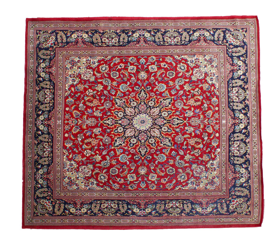 TAPPETO KUM SU FONDO ROSSO Persia A KUM CARPET Persia On red ground 241x245 cm.