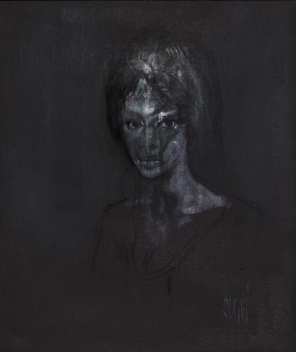 ALBERTO SUGHI Cesena (Fo) 05/10/1928 Volto di ragazza, 1961 olio e tempera su tela cm. 70x60, firma in basso a destra, dichiarazione d'autenticità dell'artista su due foto.