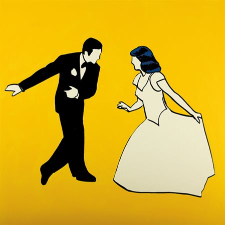 MARCO LODOLA Dorno (Pv) 04/04/1955 Ballerini tecnica mista e smalti su tela cm. 100x100, firma sul bordo in alto, dichiarazione d'autenticità dell'artista su foto, opera senza cornice.