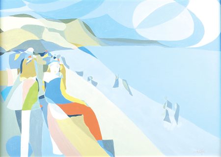 FIRMA INDECIFRABILE XX Sec. "Lungomare", olio su tela, firmato e datato 91 in basso a destra, entro cornice UNKNOWN ARTIST 20th century "Seafront", oil on canvas, signed and dated 91 (lower right), framed 50x70 cm.