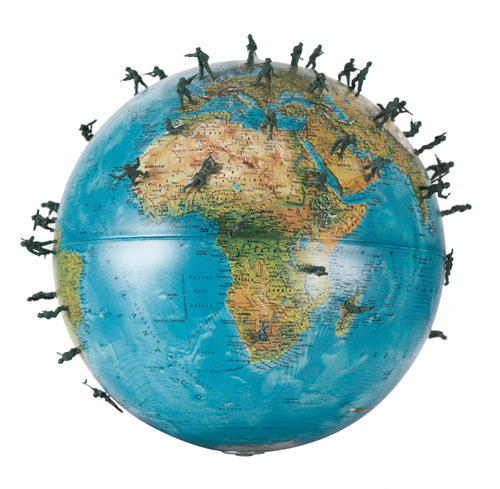 CORRADO BONOMI Novara 1956 Bellum se ipsum alert (Pace & Guerra), 1997 mappamondo e soldatini (scultura da soffitto in plastica e metallo) diametro cm. 40, opera non firmata, etichetta allegata per autenticità e provenienza della Galleria Ciocca Arte Contemporanea (MI).
