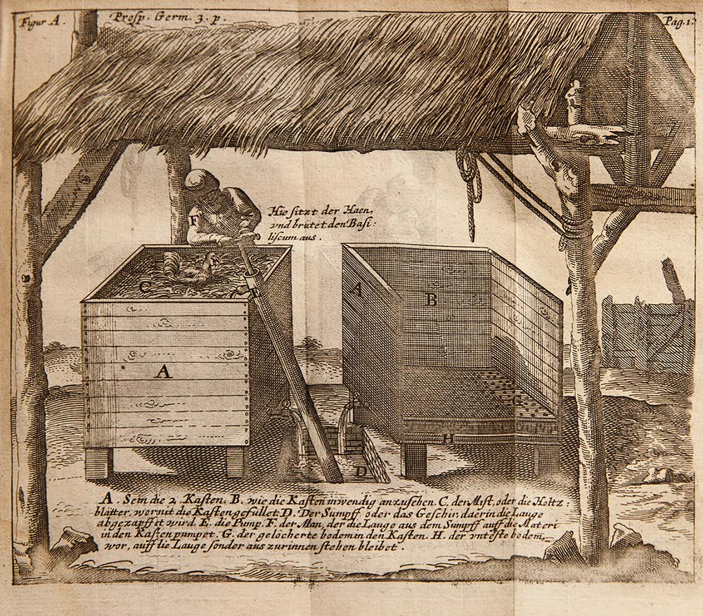 Chimica e Metallurgia - Glauber, Johann Rudolf Prosperitatis Germaniae. Pars prima [–tertia pars] In qua de vini, frumenti, & ligni concentratione, eorundemque utiliore, quam hactenus, usu agitur Amsterdam, apud Joannem Janssonium, 1659. In 8°. 3 parti in un vol. Nella III parte 4 tavole fuori testo ripiegate, bruniture, legatura coeva in pergamena rigida, strappi al dorso. Prima edizione latina, uscita in contemporanea con la prima tedesca, Dess Teutschlandts-Wohlfahrt (Amsterdam, Jannson, 1656–1661). Johann Rudolph Glauber (Karlstadt, 1604 – Amsterdam, 1670) è stato un alchimista, farmacista e chimico tedesco. È considerato uno dei fondatori dell'ingegneria chimica; nel 1625 preparò il solfato di sodio decaidrato, che fu chiamato in suo onore sale di Glauber.