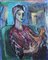 ALVARO QUERZOLI Brasile 06/01/1955 Figura con pecora, 1998 olio su tavola cm. 45x36,5; firma e anno in alto a destra, dichiarazione d'autenticità dell'artista su foto.