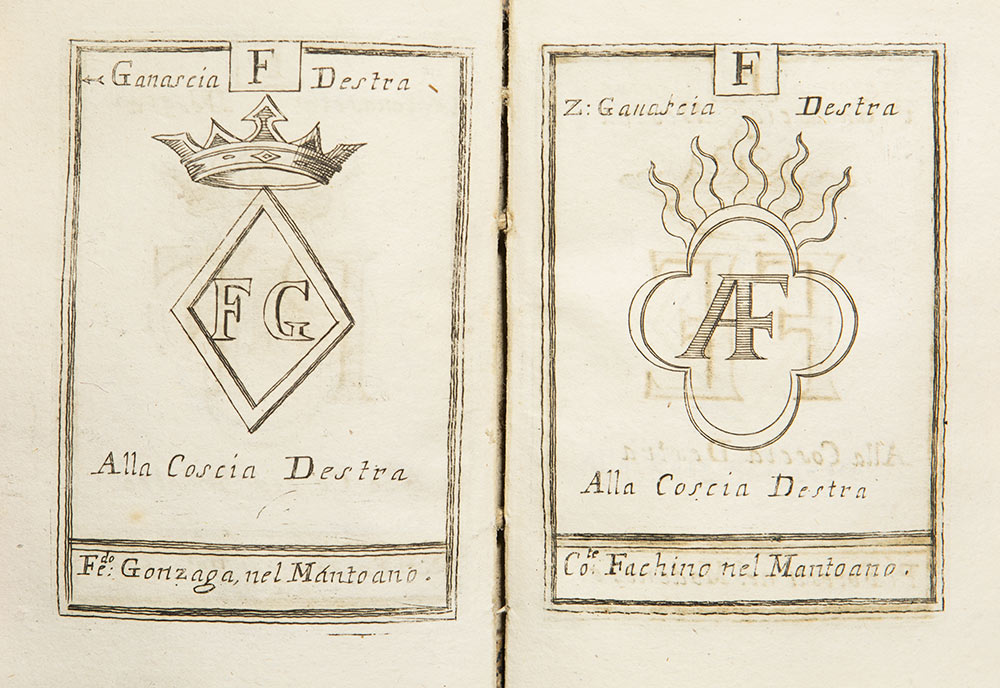 Grandi, Giacomo di Merchi delle razze de' cavalli, che presentemente si trovano in essere cosi nello Stato Veneto, come nella Lombardia, ed in parte della Romagna Venezia, Antonio Polidoro a S. Soffia, 1729. In 8°. Antiporta incisa in rame con le armi del dedicatario dell’opera, 6 carte di testo incise inquadrate da triplice filetto, seguono 94 carte con marchi di cavalli incisi in rame recto/verso, alcuni fascicoli lenti, legatura posteriore in cartonato, difetti. Ex libris manoscritto al recto dell’antiporta di “Antonij comitis de Wolkensteni”. EDIZIONE MOLTO RARA. Nell’opera vengono raffigurati circa duecento marchi di razze in ordine alfabetico, aggiungendovi per ciascuna l’indicazione dell‘ubicazione e del nome dei proprietari (famiglie nobili quali i Giustiniani, Gonzaga, Pisiani, Priuli e Grimani), nonché della parte anatomica dell’animale che veniva marcata. Come indicato dall’autore nella prefazione, l’opera si basa sul manuale di Anania Zen pubblicato nel 1658. La rarità dell’opera è data dal fatto che fosse un manuale d’uso.