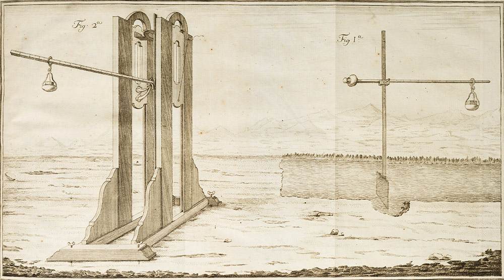 Idraulica - Michelotti, Francesco Domenico Sperimenti Idraulici. Principalmente Diretti a Confermare la Teorica, e Facilitare la Pratica del Misurare le Acque Correnti Torino, Stamperia Reale, 1767-1771. In 4°. 2 voll. Ritratto ripiegato inciso in rame di Carlo Emanuele I di Savoia, dedicatario dell'opera, in antiporta, 11 tavole grandi ripiegate fuori testo e 7 tabelle ripiegate, splendida vignetta calcografica ai frontespizi, un capolettera figurato inciso in rame, testatine e capilettera xilografici figurati, fioriture ed arrossature, legatura originale in vitello, dorso a 5 nervi, ai comparti ferro di melograno e tassello con titolo impressi in oro, tagli rossi, sguardie marmorizzate policrome, spellature, lievi mancanze al dorso. Edizione originale di questa pregevole opera idraulica del Michelotti (1710-1777), professore di matematica nella Regia Università di Torino. Il trattato contiene il resoconto di numerosi esperimenti idraulici diretti a confermare la teoria e a facilitare la pratica del misurare le acque correnti. Riccardi I, 157: “Pregevole opera”.