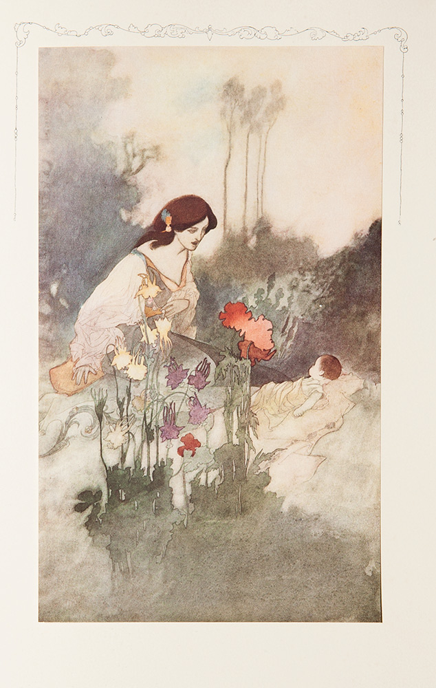 Illustrati inglesi - Shelley, Percy Bysshe The Sensitive Plant Londra, William Heinemann e Philadelphia, J. B. Lippincott Co., [1911]. 18 tavole a colori fuori testo protette da veline, legatura editoriale con impressioni a secco in oro, tagli dorati.
