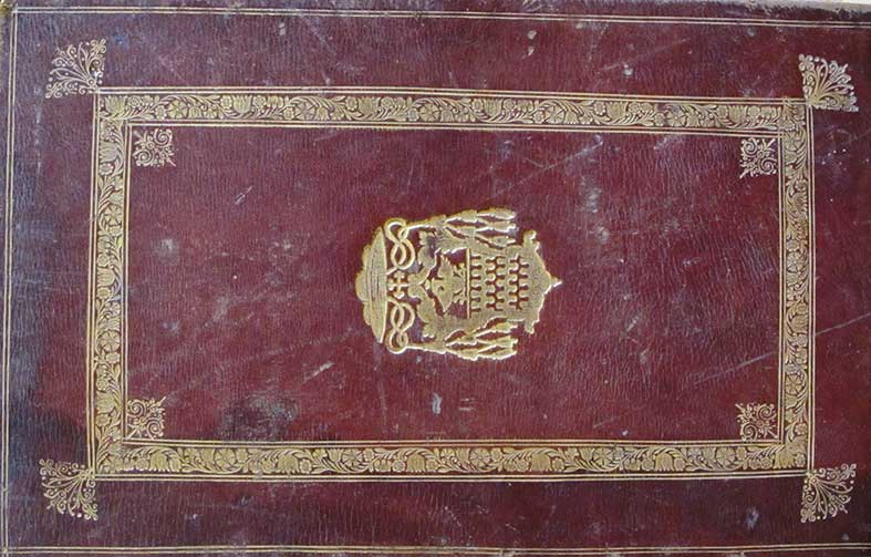 Legatura - Borghese Pontificale Romanum Clementis VIII. Pimum, nunc denuo Urbani Papae Octavi auctoritate recognitum Anversa, Officina Plantiniana, Balthasar Moretus, 1663. In 2°. Frontespizio stampato in carattere rosso e nero e con vignetta incisa, iniziali dipinte di rosso, finalini stampati in rosso, testo in rosso e nero disposto su 2 colonne contenuto in cornice di doppio filetto, diverse pagine notate, legatura coeva in marocchino rosso a grana lunga, decorazione impressa in oro, ai piatti duplice cornice di filetti e rotelle, piccoli festoni stilizzati agli angoli interni ed esterni, al centro dei piatti le armi della famiglia Borghese, dorso a 6 nervi, ai compartimenti fregi, tagli dorati, dentelles, difetti. Rara edizione del famoso “Pontificale” del 1641 del Moretus in legatura alle armi della famiglia Borghese.