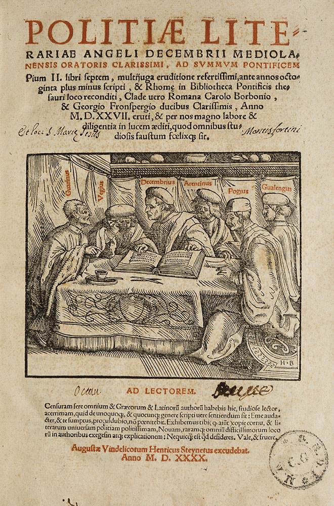 Decembrio, Angelo Politiae literariae Angeli Decembrii Mediolanensis oratoris...