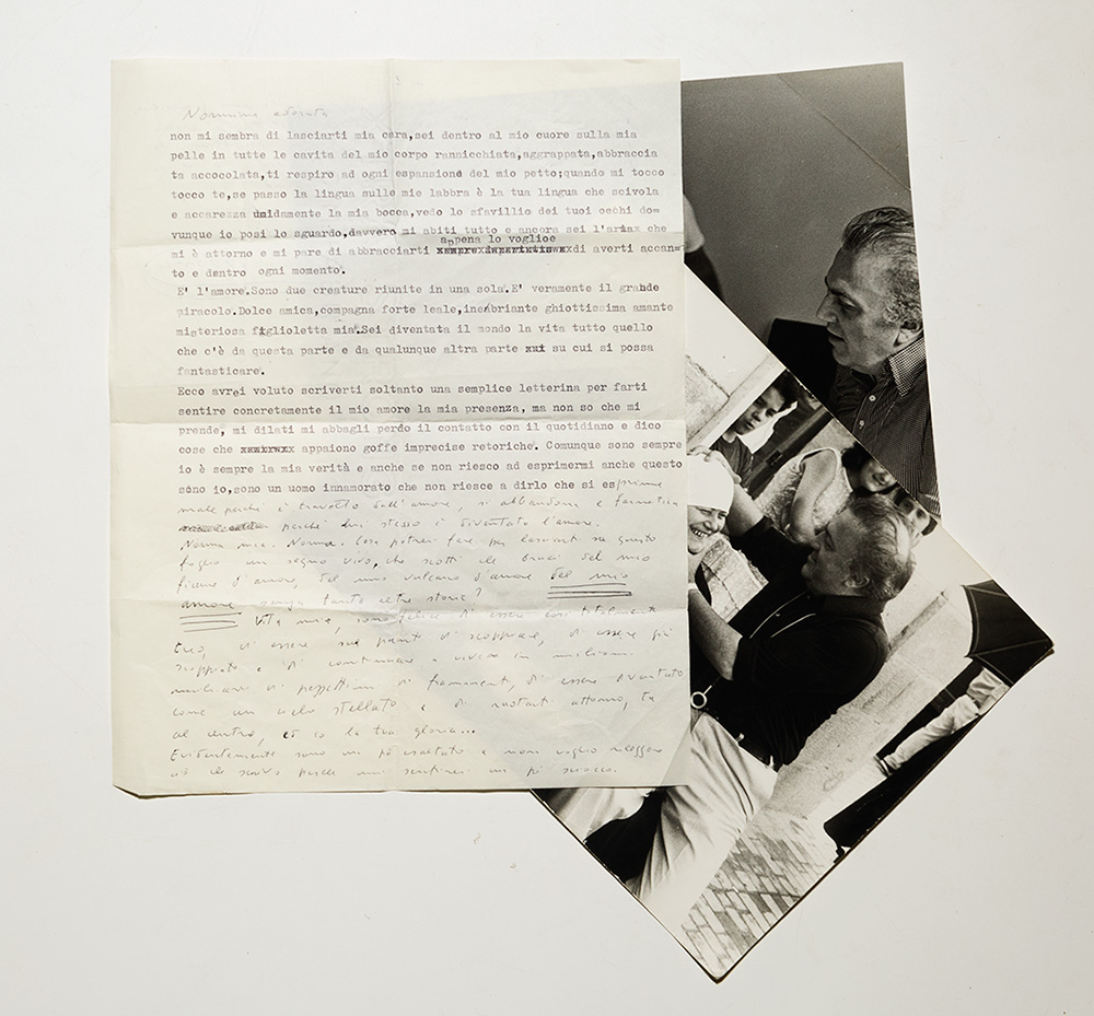Fellini, Federico Lettere dattiloscritte con parti autografe Due lettere dattiloscritte, la prima di due facciate in 4°, 280 x 220 mm., la seconda di tre facciate, 303 x 206 mm., in entrambe parti autografe di pugno di Fellini per diverse righe, insieme 5 foto di scena di vario formato, in b/n e a colori. Due splendide lettere felliniane, entrambi indirizzate a Norma Giacchero, la mitica segretaria di produzione del Maestro. Per 30 anni lavorò come segretaria di edizione, iniziando nel 1963 con Giulietta degli Spiriti, sino al 1993, anno della morte del regista. Le due lettere rivelano un’amicizia profonda, che sfuma, in certi momenti, in forme di sottile infatuazione. La prima lettera è scritta alla madre di Norma ed è datata 9 agosto 1967: in essa dichiara tutto il suo profondo legame con Norma, il suo bene profondo. “Nessun ragionamento può far diminuire l’ardore e la freschezza di questo rapporto, né offuscare la gioia che provo con lei o, me lo lasci dire, l’inebriante spensieratezza di certi momenti della nostra giornata... Norma mi dà pace, mi fa sentire calmo, responsabile pur accendendo al massimo d’incandescenza sangue cuore fantasia. Norma mi fa vivere meglio. Non è meravigliosa una creatura capace di questo miracolo?”. Nella seconda lettera, diretta a Norma, il tono diventa più caloroso e coinvolgente: “Sei diventata il mondo, la vita, tutto quello che c’è da questa parte e da qualunque parte su cui si possa fantasticare”. In un’intervista rilasciata nel 2008, Norma così si esprimeva in merito alla sua relazione con Fellini: “Mi legava a lui non solo un rapporto professionale ma anche umano.” Alla luce di queste due lettere questo rapporto si arricchisce di una profonda intimità e una ricchezza sconosciute, illuminando aspetti di una relazione professionale che ha contribuito a fare la storia del cinema mondiale. Le foto fanno da contorno alle due lettere, immortalando momenti di allegria delle troupe cinematografiche.
