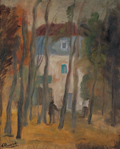 GIANRODOLFO D’ACCARDI Palermo 1906 - Milano 01/09/1993 Case nel bosco olio su tavola cm. 30x25, firma in basso a destra.