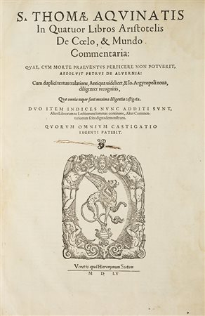 Tommaso d'Aquino, Santo In quatuor libros Aristotelis De coelo, e mundo...