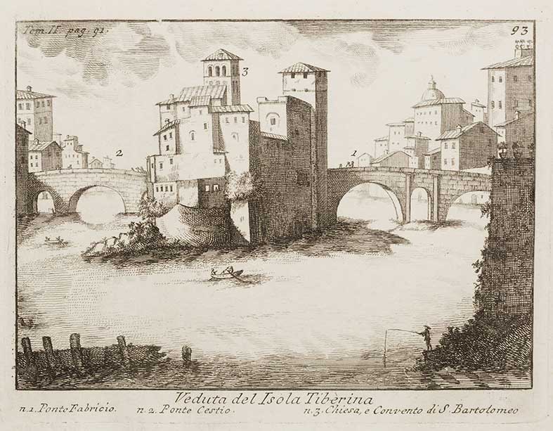 Venuti, Ridolfino Accurata, e succinta descrizione topografica delle antichità di Roma Roma, B. Bernabo & G. Lazzarini, 1763. In 4°. 2 voll. Frontespizi con vignette calcografiche, testatine, capilettera e finalini figurati, 1 carta topografica piu volte ripiegata, 96 tavole di cui 19 di Piranesi, il tutto finemente inciso in rame, strappo e restauro alla carta ripiegata, qualche leggera macchia, legature originale con ai piatti carta marmorizzata policroma, sciupate, astuccio. Prima edizione dell'opera dell'abate Ridolfino Venuti, che ricostruisce la topografia dell'antica Roma. Venuti fu tra i fondatori della prestigiosa Accademia Etrusca di Cortona, di cui divenne segretario. Brunet V, 1126; Cicognara 3905; Olschki Choix 18214; Schudt 769.