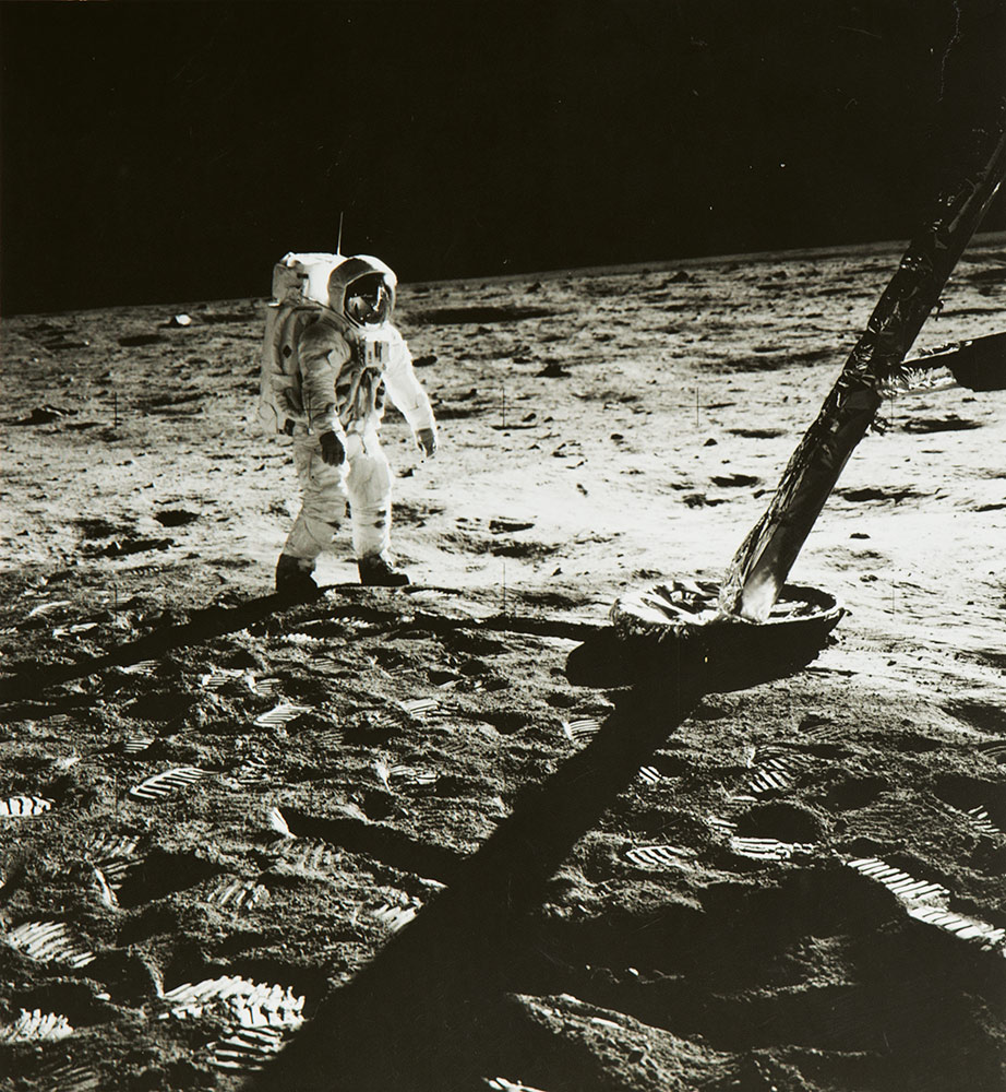 N.A.S.A Apollo 11, Buzz Aldrin, 1969 Stampa alla gelatina sali d'argento, stampata 1971. ‘NASA AS11-40-5902’ sul margine superiore sinistro rectocm 18,3 x 17 (7.2 x 6.7 in.)Gelatin silver print, printed 1971. ‘NASA AS11-40-5902’ on the upper left recto margin.