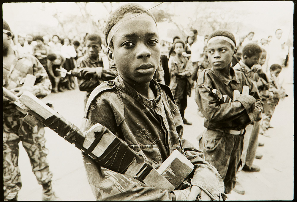 Sebastiao Salgado (b. 1944) Angola, Young MPIA Soldiers, 1975 Stampa vintage alla gelatina sali d’argento. Timbro del fotografo sul versocm 19 x 28 (7.4 x 11 in.)Vintage gelatin silver print. Photographer’s credit stamp on the verso.