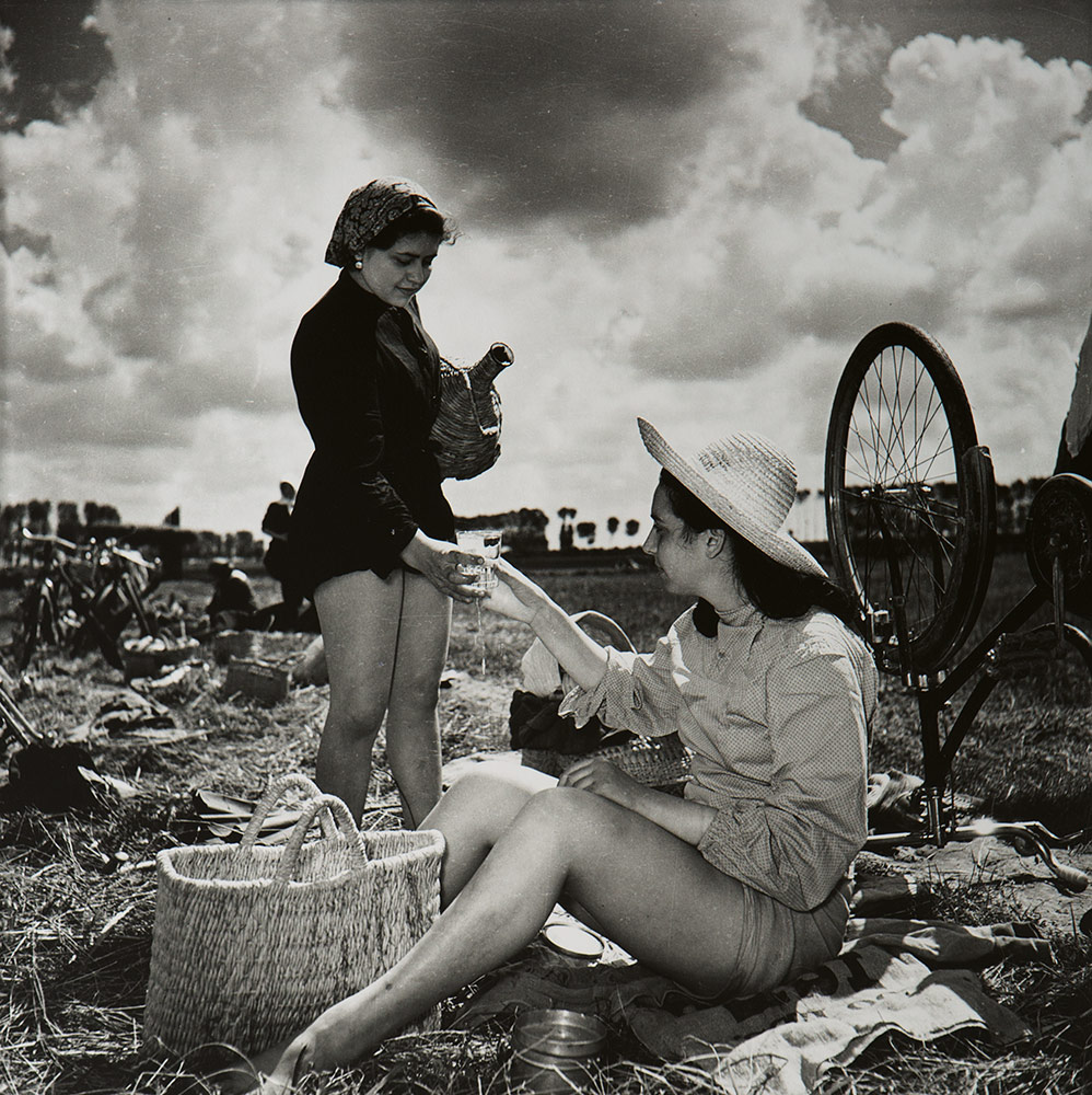 Enrico Pasquali (1923-2004) Il dopopranzo delle mondine, Medicina (Bologna), 1953 Stampa alla gelatina sali d’argento, stapata ca. 1980. Firmata a penna blu sul rectocm 24,5 x 24 (9.6 x 9.4 in.)Gelatin silver print, printed ca. 1980. Signed in blue ink on the recto.