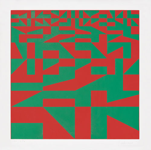 GETULIO ALVIANI Udine 05/09/1939 Fifty-fifty, 1962 serigrafia su carta cm. 50x50, esemplare 120/250, firma in basso a destra, pubblicata su "Alviani Catalogo Antologica" tenutasi presso il Gamec (BG) dall'ottobre 2004 al febbraio 2005, Edizioni Skira, pagina 109.