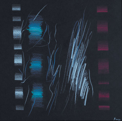 ENNIO FINZI Venezia 1931 Senza titolo, (anni 2000) pastelli su cartoncino nero cm. 35x35, firma in basso a destra, dichiarazione d'autenticità dell'artista e Archivio Ennio Finzi su foto