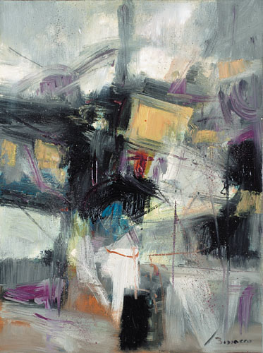 MARTINO BISSACCO Taglio di Po 21/04/1941 Senza titolo tecnica mista su tela cm. 40x30, firma in basso a destra e al retro, dichiarazione d'autenticità dell'artista su foto