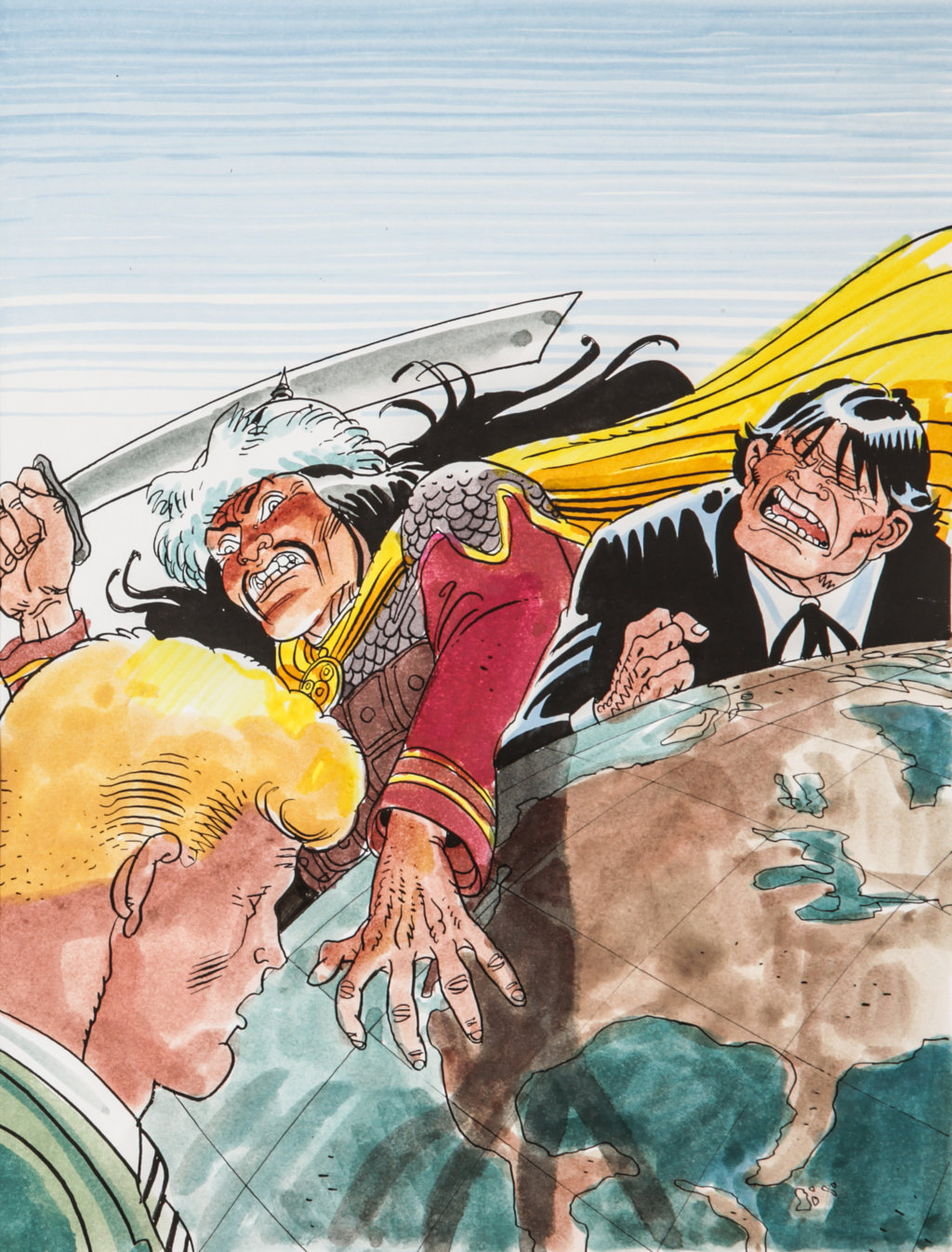Giancarlo Alessandrini "Martin Mystère - Operazione Gengis Khan", 1998 matita su carta, 26,5 x 33 cm Originale di copertina per "Operazione Gengis Khan" edita su Martin Mystère n.199 dalla Boneli nel 1998. Si accompagna la prova colore ad acquerello. Firmata e datata. In cornice.
