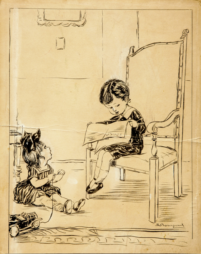 Luigi Bompard "Illustrazione", anni '40 china su cartone, 28,5 x 36 cm...