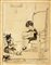 Luigi Bompard "Illustrazione", anni '40 china su cartone, 28,5 x 36 cm Strappo centrale restaurato. Firmata.
