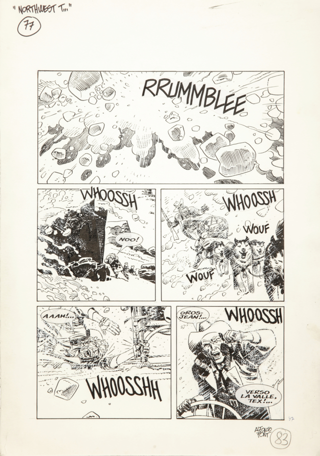 Alfonso Font "Speciale Tex - Gli assassini", 1998 matita e china su cartoncino, 35 x 49,5 cm Tavola originale per "Gli assassini" edita sullo Speciale Tex (Texone) n.12 dalla Bonelli nel 1998. Firmata.