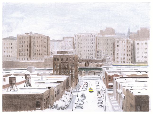 Piero Macola "Il piccolo burattinaio di Varsavia - New York", 2013 matite colorate su cartoncino, 22 x 30 cm Illustrazione originale per il romanzo "Il piccolo burattinaio di Varsavia" di Eva Weaver edito da Mondadori nel 2013. ?Firmata al retro.?