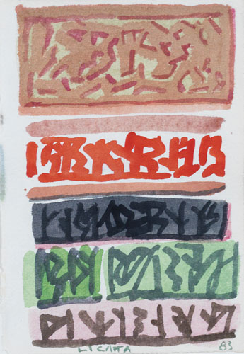 RICCARDO LICATA Torino 20/12/1929 Senza titolo, 1983 tecnica mista su carta cm. 13x9, firma in basso a destra, anno in basso al centro, pubblicato sul catalogo "Licata e i suoi diari", testi di Giovanni Granzotto e Dino Marangon, Stamperia dell'Arancio, 2005, pagina 35
