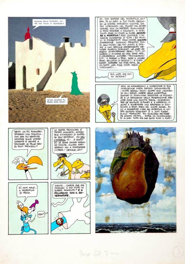 Massimo Mattioli "Joe Galaxy e le perfide lucertole di Callisto IV", 1980/81 china, pennarelli e collage su cartoncino, 35 x 50 cm Tavola originale per "Joe Galaxy e le perfide lucertole di Callisto IV", edita a pag.3 dell'ottavo e ultimo episodio della serie sulla rivista Frigidaire negli anni '80 e '81.