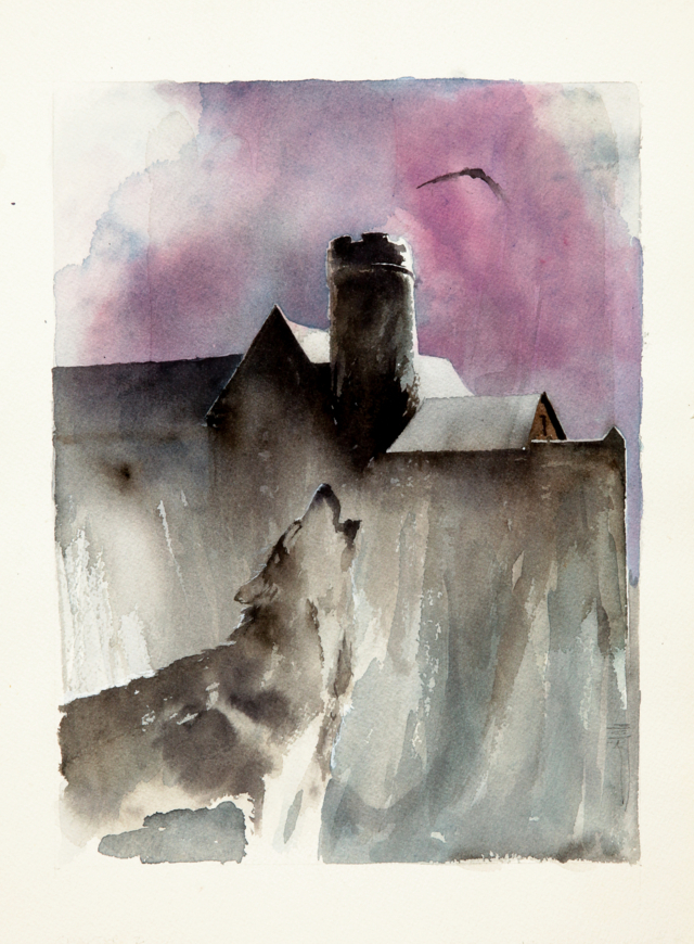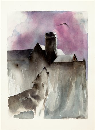 Jon Muth "Dracula - A Symphony in Moonlight and Nightmares (lupo)"", 1986 acquerello su cartoncino, 28,5 x 38 cm Illustrazione originale realizzata da Muth per "Dracula: A Symphony in Moonlight and Nightmares" edita dalla Marvel Comics nel 1986. Riadattamento del più classico dei romanzi gotici eseguito in chiave pittorica da Muth, artista geniale quanto eclettico.
