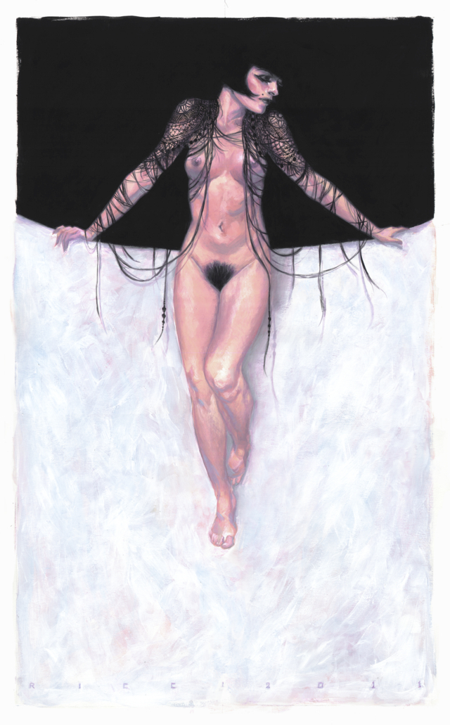 Roberto Ricci "Blanche", 2011 acrilici su cartoncino, 47 x 73 cm Pin-Up originale realizzata da Ricci nel 2011 in occasione di una mostra colletiva tenutasi in una galleria parigina. Affermato fumettista ed illustratore di origini italiane, Ricci deve la sua fama soprattutto ai successi editoriali conseguiti in Francia e America con "Splatter" e "Urban". Firmata e datata.