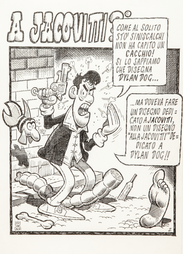 Luigi Siniscalchi "A Jacovitti", 2010 china su cartoncino, 25 x 35 cm Illustrazione originale realizzata da Siniscalchi, artista della scuderia Bonelli, in omaggio al grande Jacovitti. Firmata.