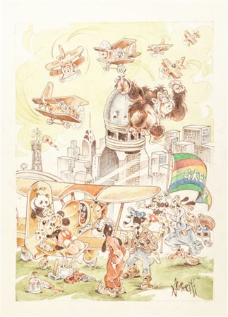 Sergio Asteriti "Greenpeace " china e acquerello su cartoncino, 25 x 35 cm Illustrazione originale realizzata dal maestro Disney per una campagna animalista. Firmata.