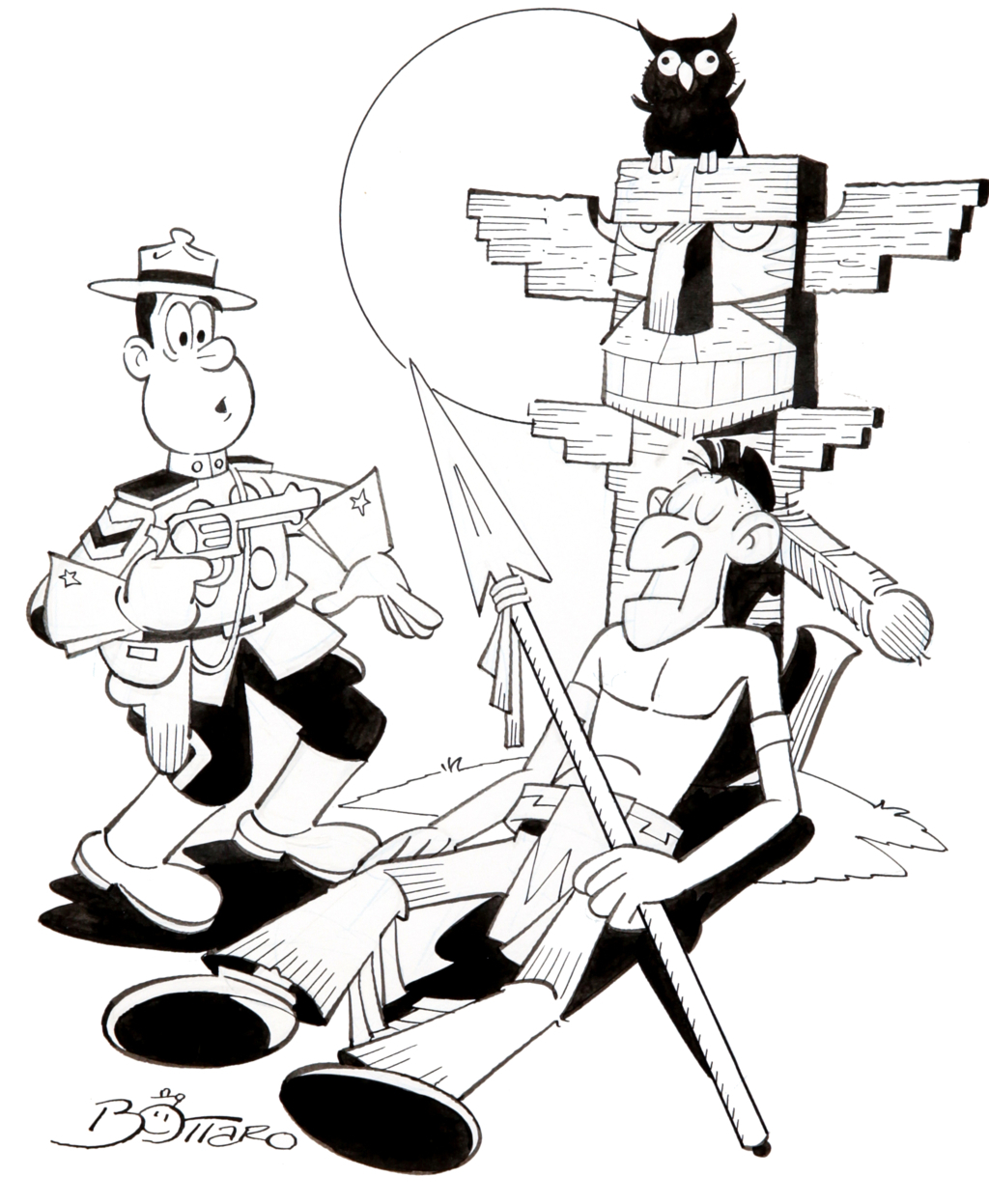 Luciano Bottaro "Baldo", anni '80 matita e china su cartoncino, 22,5 x 27 cm Illustrazione originale realizzata da Bottaro e probabilmente utilizzata come copertina per "Baldo", il famoso ranger delle Giubbe Rosse nato nel 1952 ed edito dalla Bianconi. Firmata.