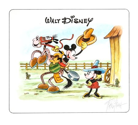 Franco Bruna "Topolino cowboy" china e acquerello su cartoncino, 37,5 x 33,5 cm Firmata.