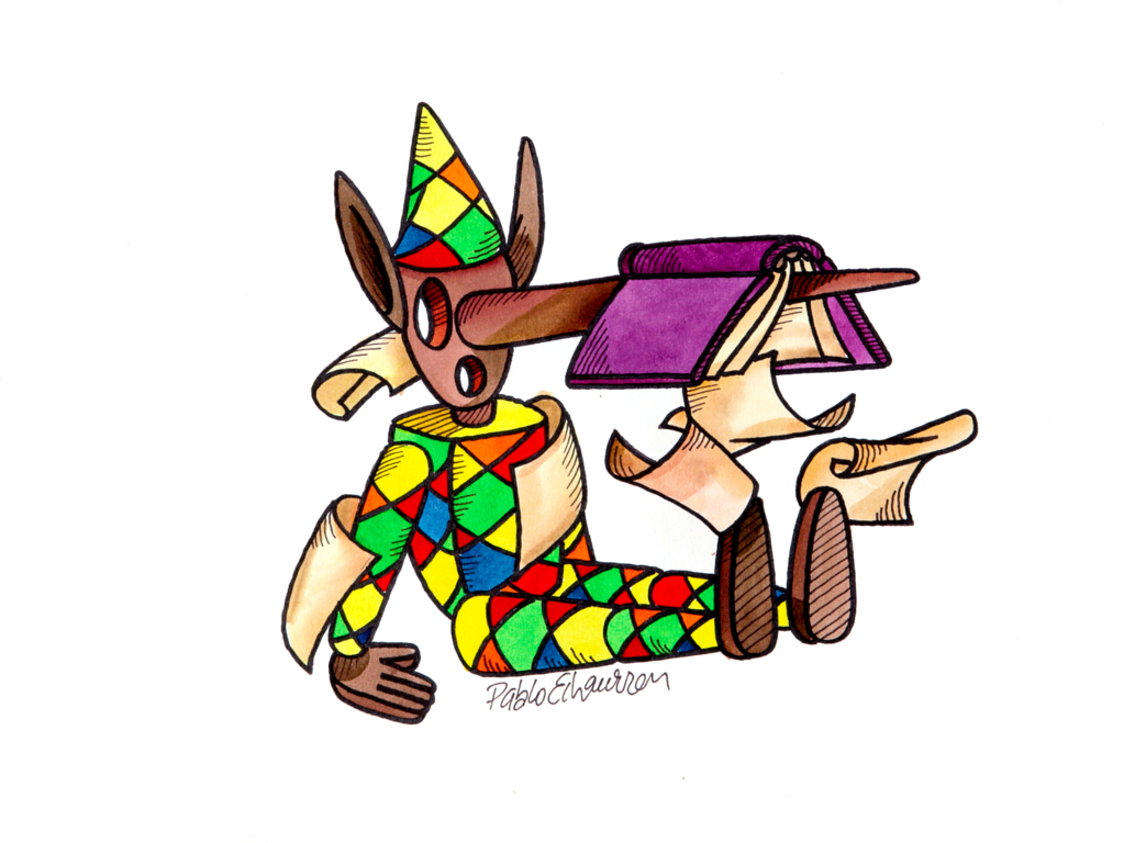 Pablo Echaurren "Pinocchio" china e acquerello su cartoncino, 33 x 23,5 cm Firmata.
