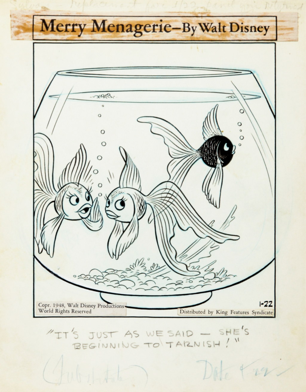 Bob Grant "Merry Menagerie", 1948 china e matite colorate su cartoncino, 19,5 x 25 cm Tavola giornaliera del 22/01/1948 per "Merry Menagerie".