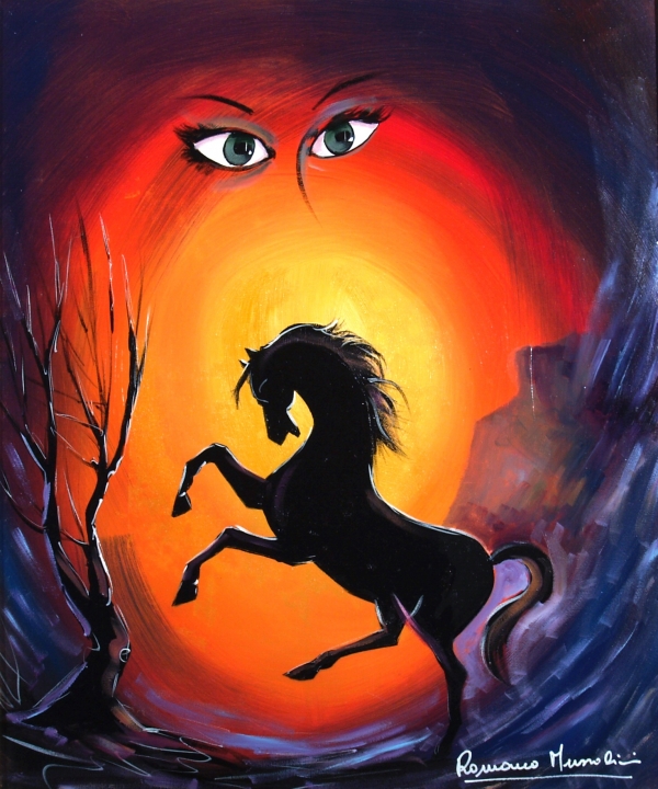 Lotto 4 | MUSSOLINI ROMANO (Forlì 1927 - Roma 2006) "Occhi su cavallo rampante" Olio...