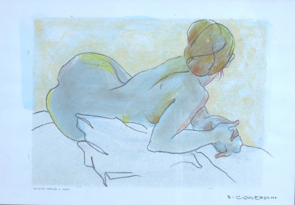 Lotto 7 | CONVERSANO ROMANO "Nudo disteso" Pastelli colorati su carta cm. H: 27.00 L:...