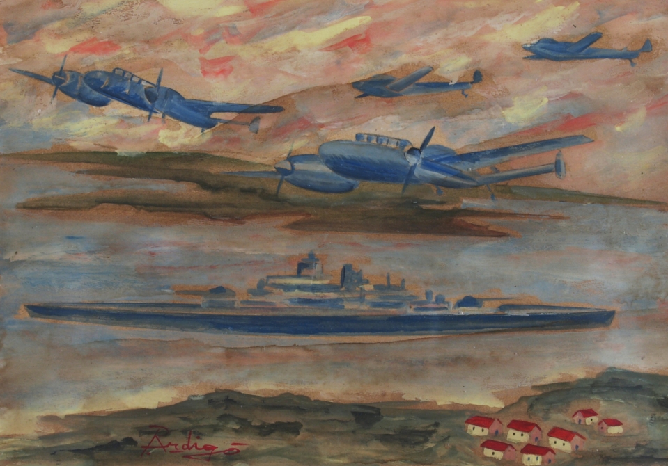 Lotto 12 | ARDIGO' PIETRO "Aerei" Olio su carta povera cm. H: 19.00 L: 29.00 Firma in...